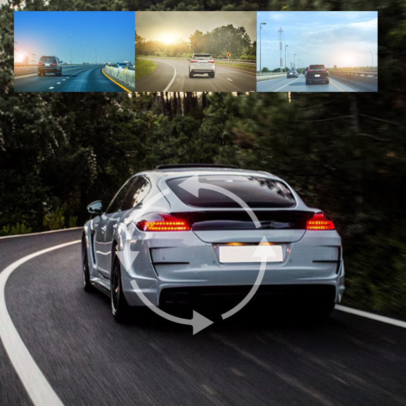 Offering complete front and back coverage. It not only captures all angles for enhanced safety but also assists in parking by providing a clear view of what's behind your vehicle.
